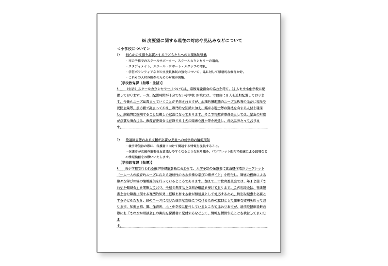 ▶令和6年度 教育子育てに関する要望書